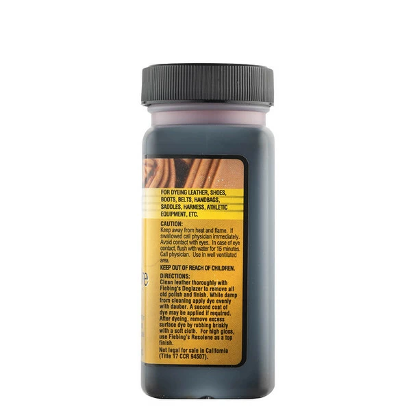 Note: Fiebing’s Leather Dye is flammable. Keep away from heat, open flame and other ignition sources. Do not smoke while using this product. Use in a well-ventilated area.