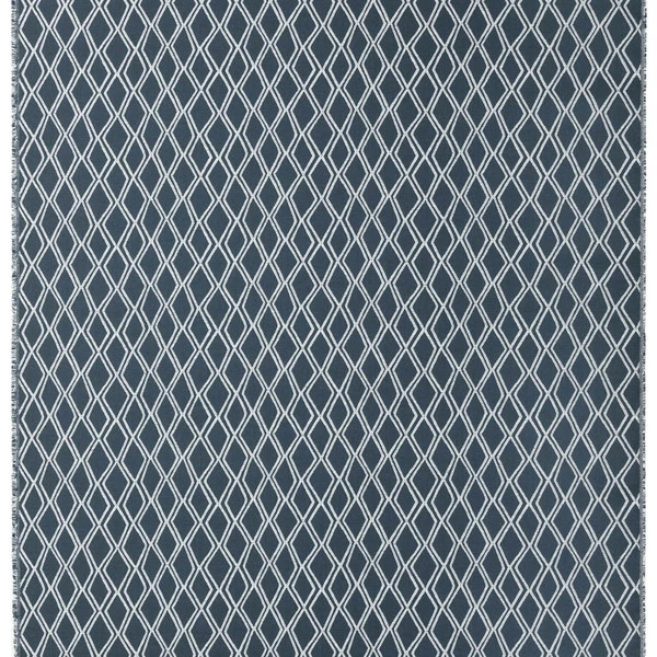Sunbrella® Voyage Indigo is a 100% acrylic performance fabric. It features a geometric pattern of white-outlined diamonds on a navy background that brings subtle sophistication to whatever project it’s used for.
