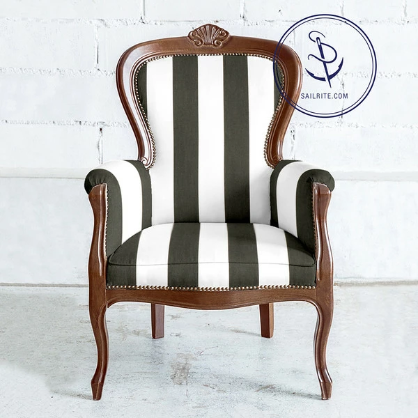 Bring the performance of Sunbrella® inside with Sunbrella Upholstery Fabrics! Cabana Fabric is a solution-dyed furniture fabric from the Sunbrella Upholstery Collection by Glen Raven. Featuring wide stripes in a bright and bold color palette, Cabana is woven from 100% solution-dyed acrylic yarns with a soft and supple hand. This comfortable, beautiful fabric makes the dining or living room a worry-free space for families and pets. It’s amazingly easy to maintain, and most spills can be cleaned with mild soap and water. With this kind of durability, great warranty and a wide variety of styles, what’s not to love?
